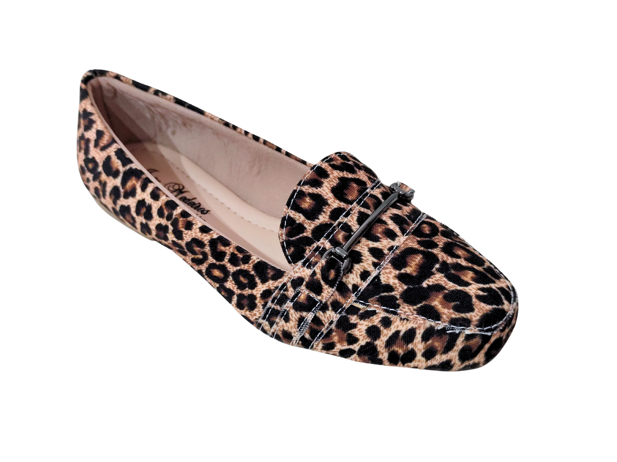 Sapatilha Mocassim Bico Quadrado de Onça com Fivela