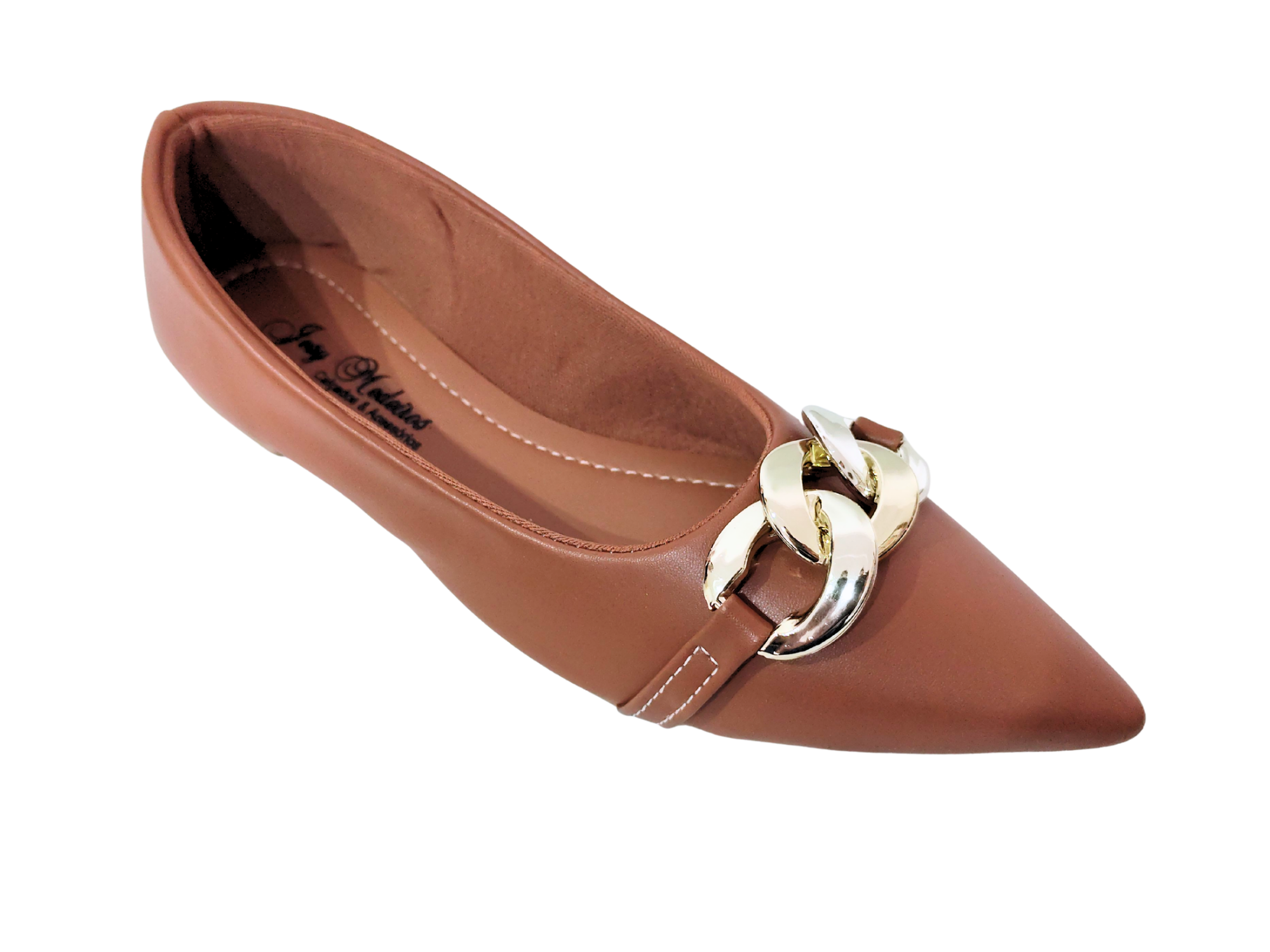 Sapatilha Alongada Caramelo com Fivela Dourada